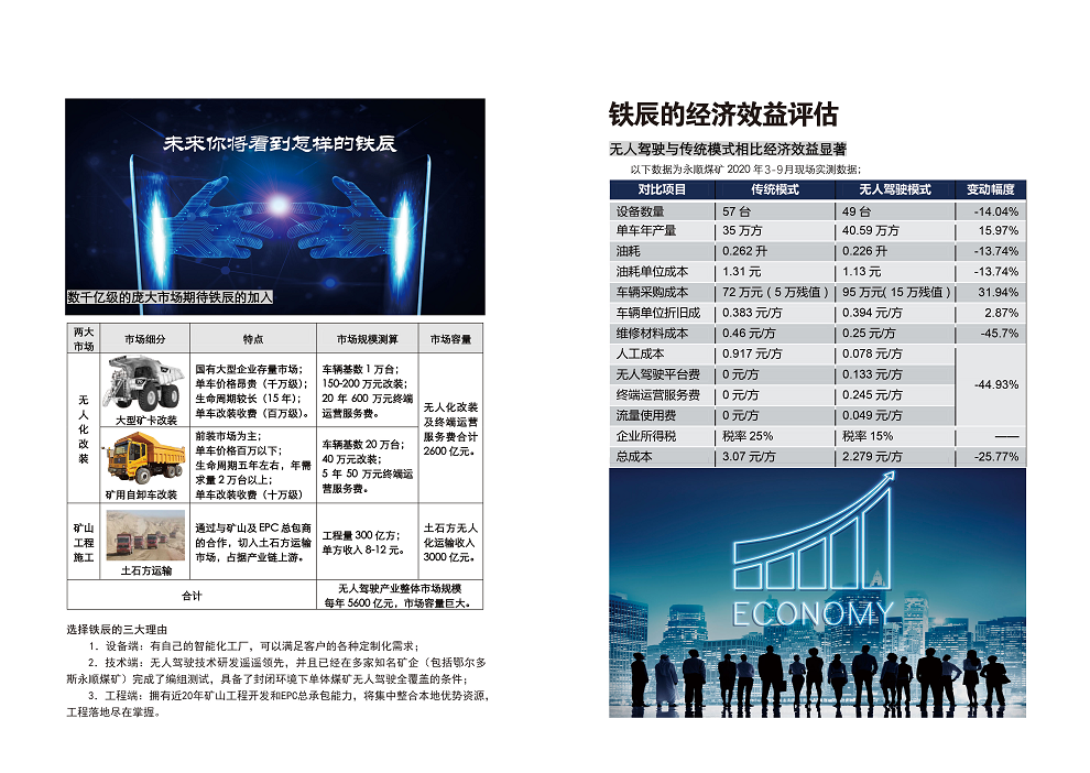 截至目前,鐵辰智能裝備項(xiàng)目建設(shè)進(jìn)程已經(jīng)過半,技術(shù)中心、無人駕駛組裝車間即將投入運(yùn)營(yíng),現(xiàn)代化的成套生產(chǎn)線有望在春節(jié)前完成入廠安裝和調(diào)試,嶄新的無人駕駛樣車已經(jīng)在鄂爾多斯永順煤礦實(shí)現(xiàn)穩(wěn)定運(yùn)行,各項(xiàng)技術(shù)參數(shù)達(dá)到國(guó)內(nèi)先進(jìn)水平,為明年實(shí)現(xiàn)全面量產(chǎn)和上百臺(tái)設(shè)備編組運(yùn)行奠定了堅(jiān)實(shí)基礎(chǔ)。