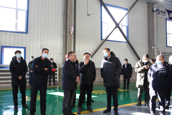 2022年1月19日,鄂爾多斯市委組織部副部長李治成,自治區(qū)黨委組織部機關(guān)黨委(人事處)四級主任科員李長春、準格爾旗委常委、組織部部長李耀軍,旗委組織部副部長、非公經(jīng)濟和社會組織黨工委書記張春林、準格爾經(jīng)濟開發(fā)區(qū)領(lǐng)導(dǎo)李富生、侯相君等一行領(lǐng)導(dǎo),實地調(diào)研鐵辰智能新能源裝備制造項目。鐵辰智能公司董事長趙帥、副總經(jīng)理崔文玉、總工程師徐先澤、總經(jīng)理助理張浩然全程陪同調(diào)研。